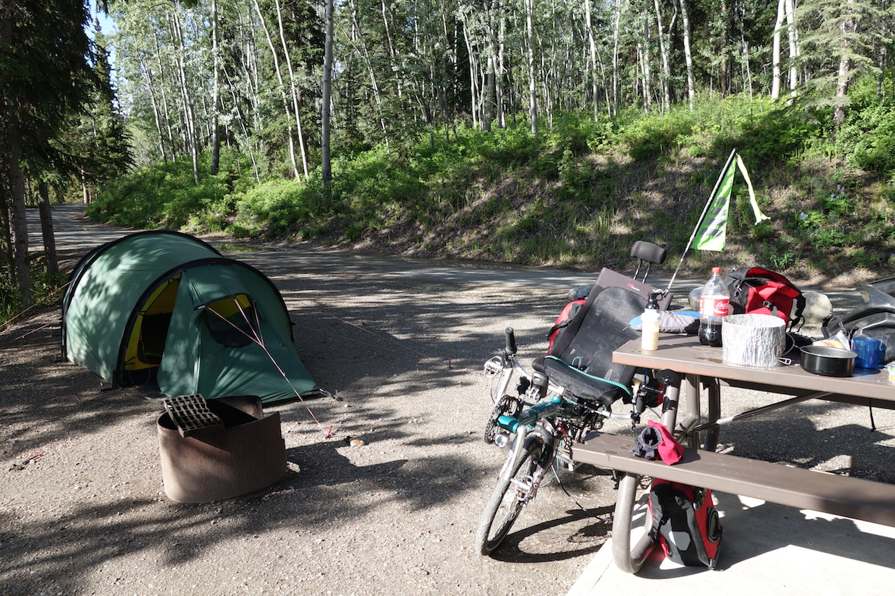 My energy levels now rising again I managed to get to the Mountain shadow camp ground north of Iskut.