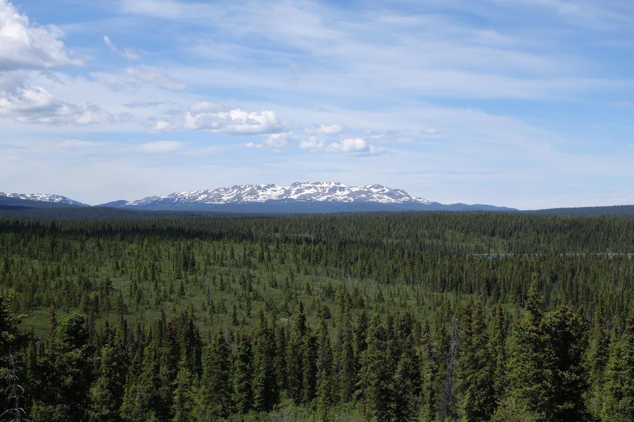 Vast snow tipped mountains receded into the distance and were replaced by dense spruce and pine forests.