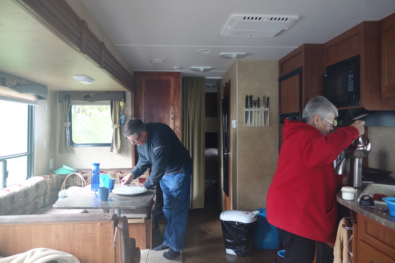 A few minutes later I was sitting in their warm giant RV talking about my travels so far as the smell of bacon filled the caravan.