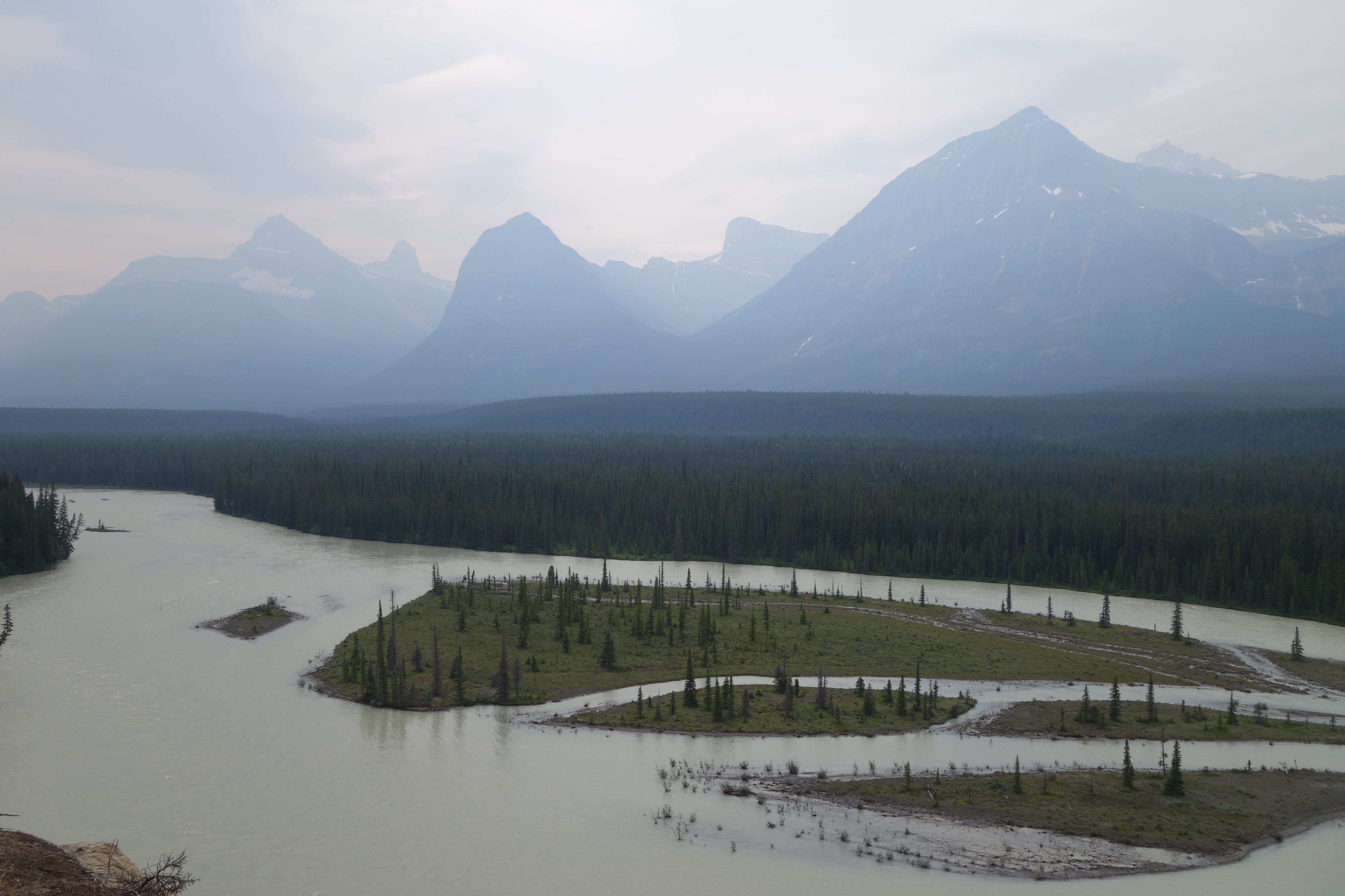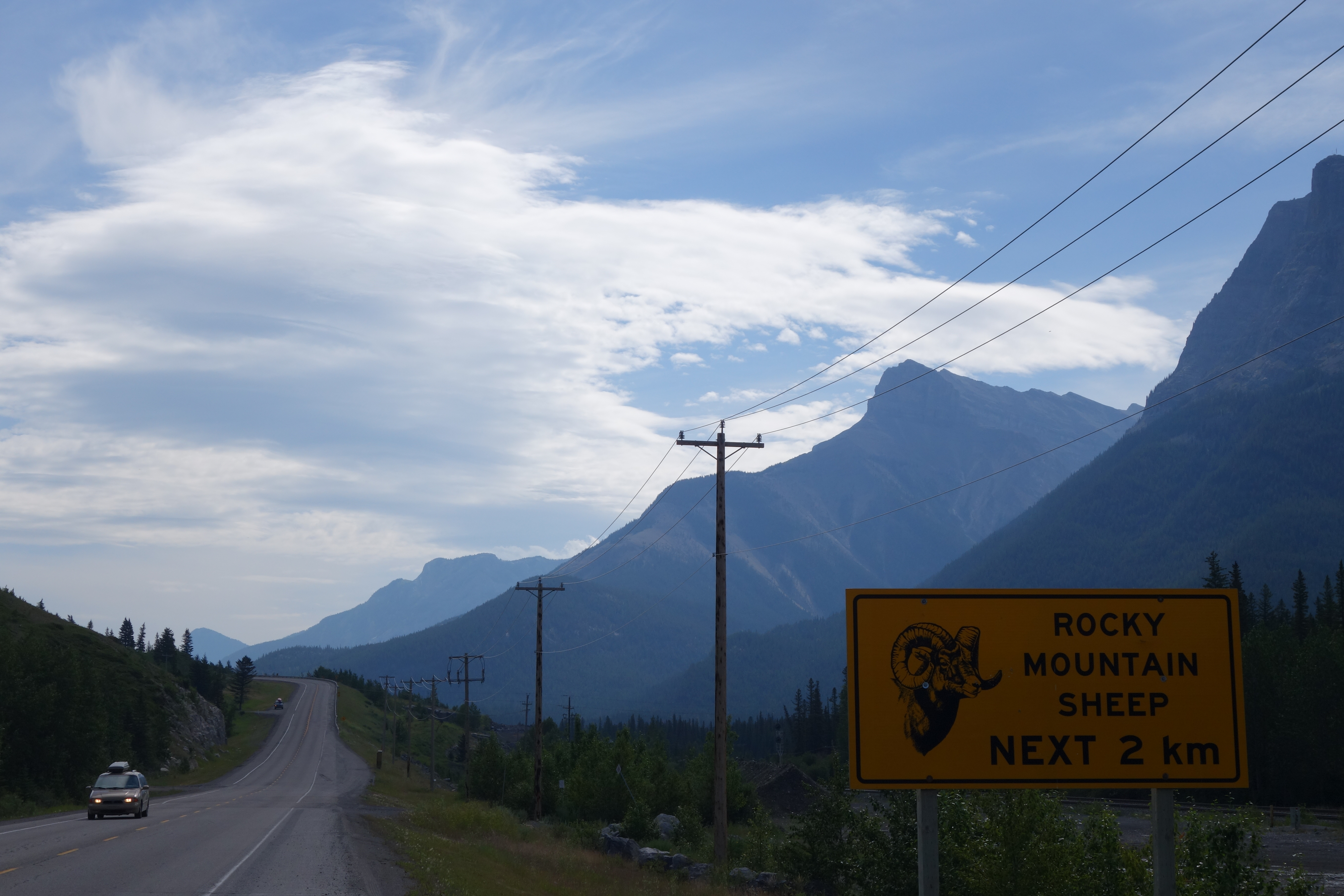 From Lake Louise, I travelled the tranquil Bow valley parkway through annoyingly touristy Banff, then on to Canmore where I bumped into the French couple again. We camped at the municipal ground there and had a bad night sleep as some council genius thought it would be wise to put the site between two major highways and a continental railway line!