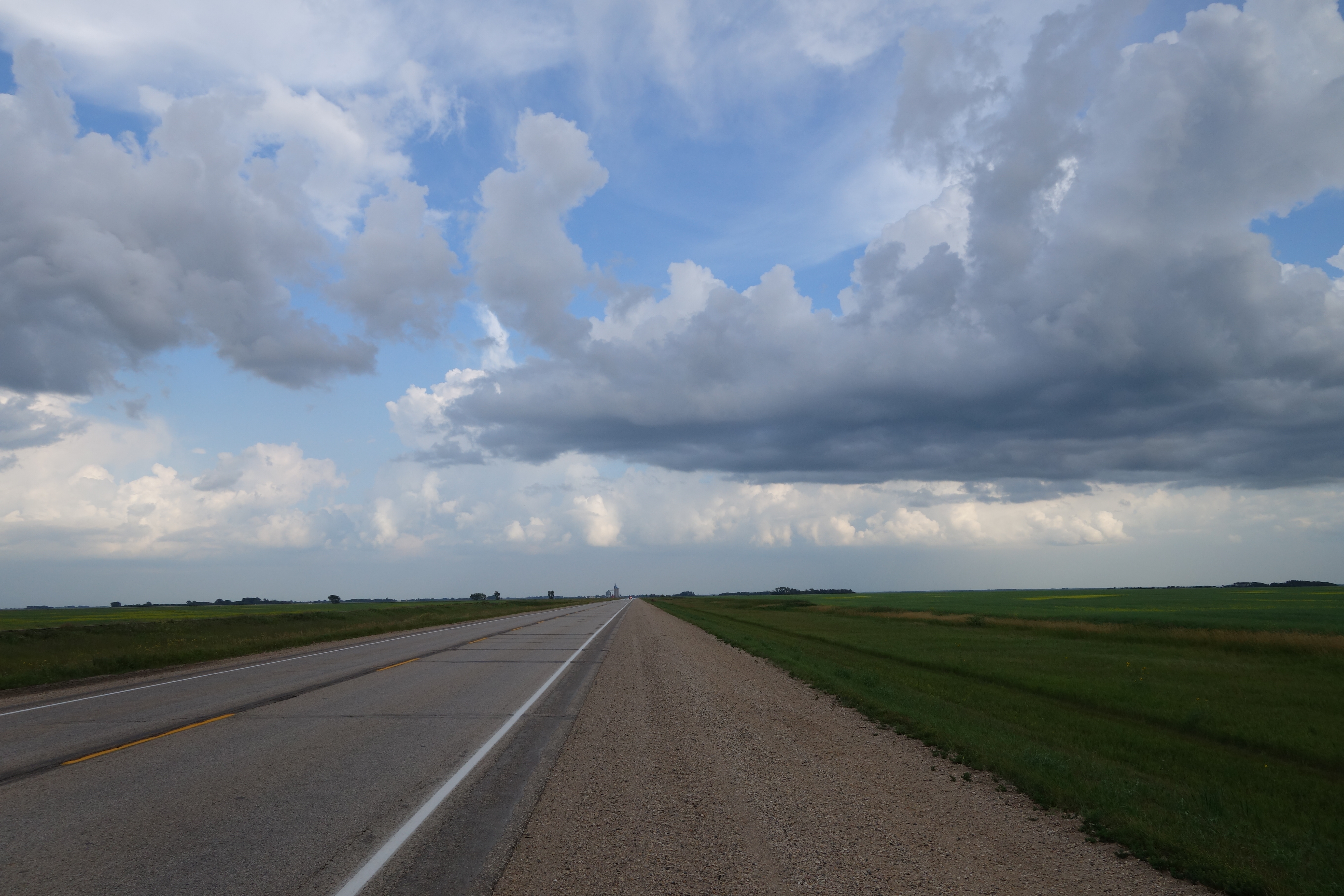 The final leg of the prairies through Manitoba was marked by my second puncture of the journey, thunderclouds and both powerful tailwinds and headwinds.