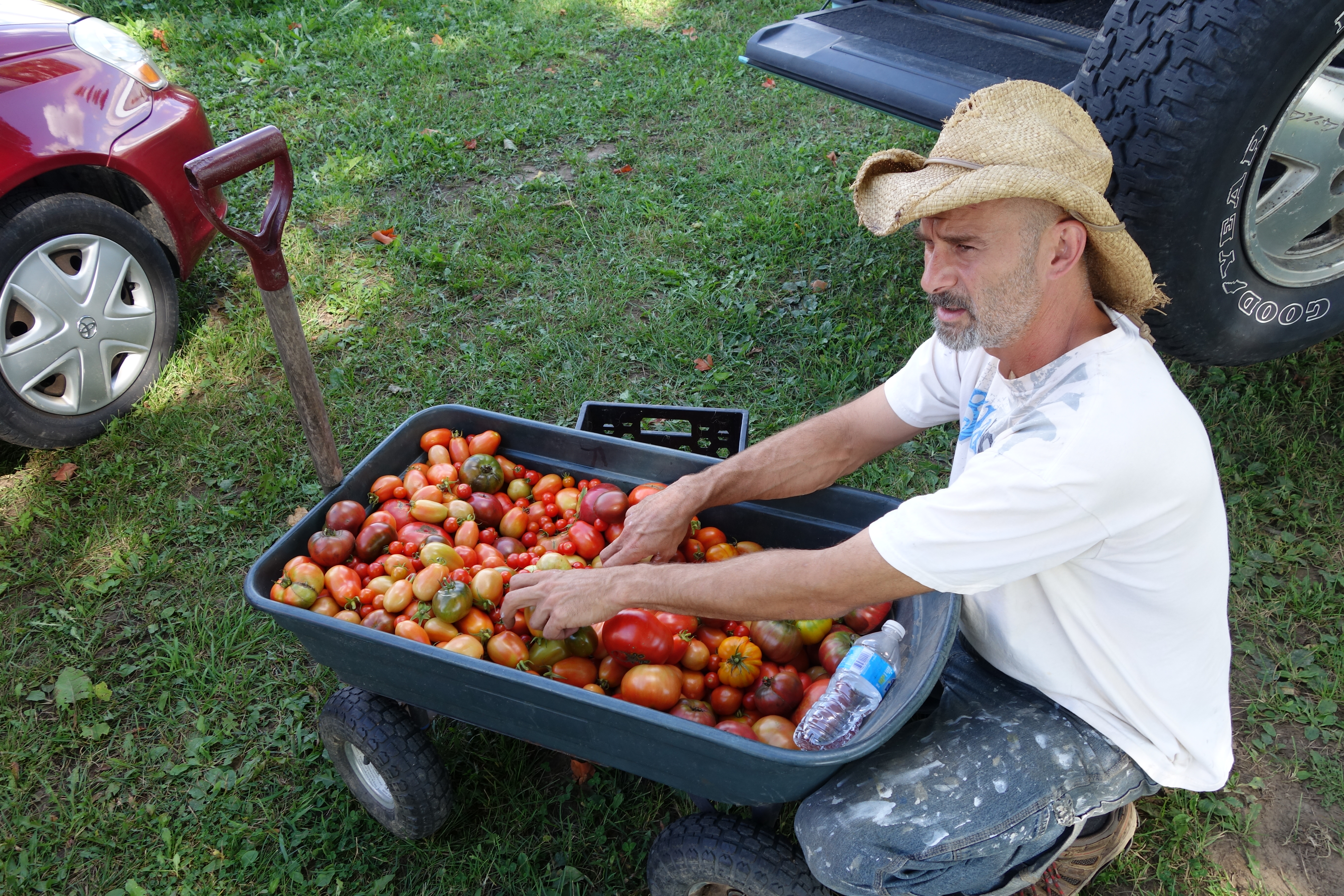 While waiting, I spoke with Frank and Ann. They leased a small garden on the farm and were busy harvesting a huge trailer wagon full of Tomatoes as well as many other fruits and vegetables.