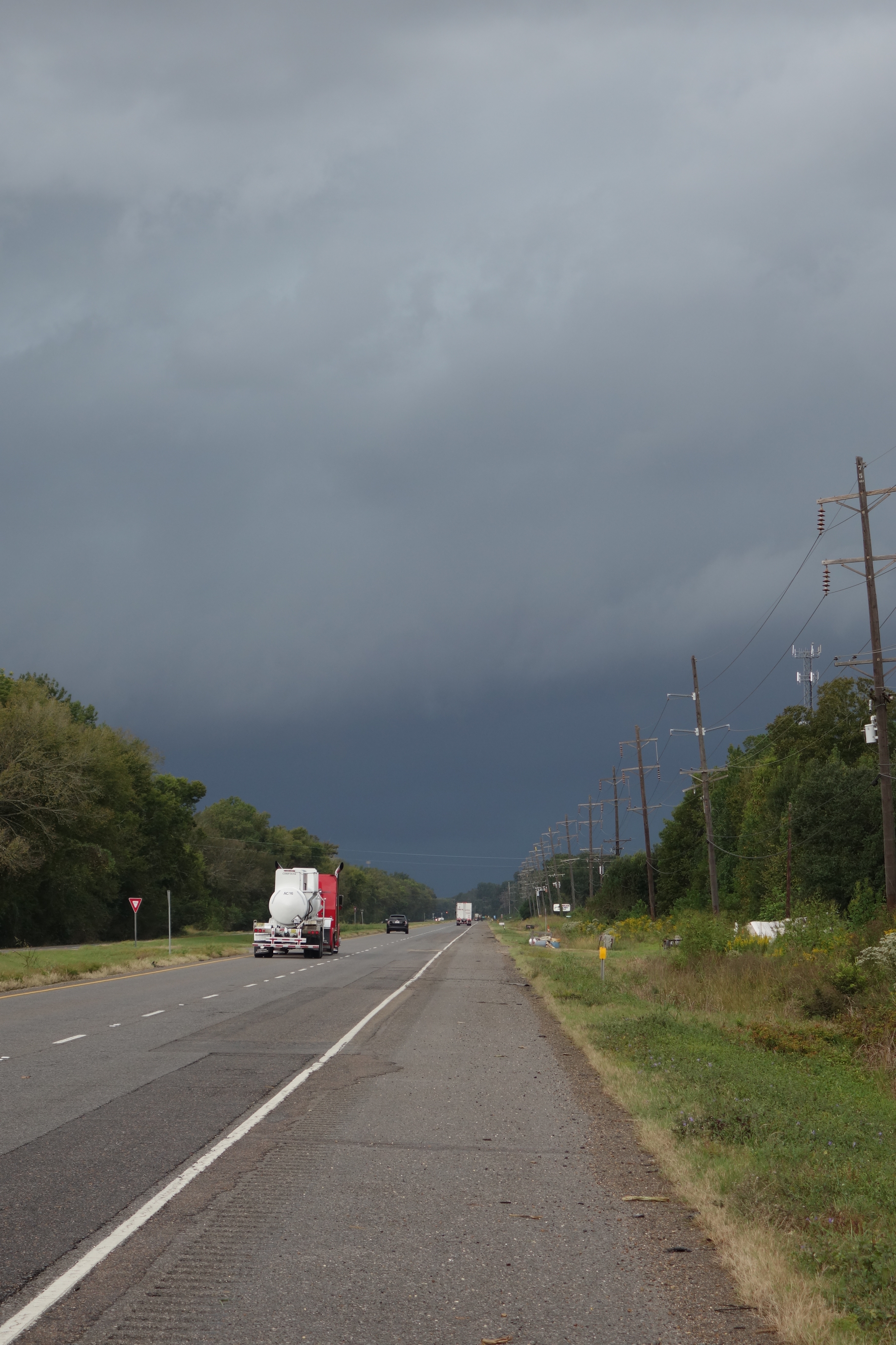 Mid thunderstorm with lightning strikes just a few seconds apart and nowhere to shelter. I crossed the Atchafalaya basin on the 8-mile long causeway.