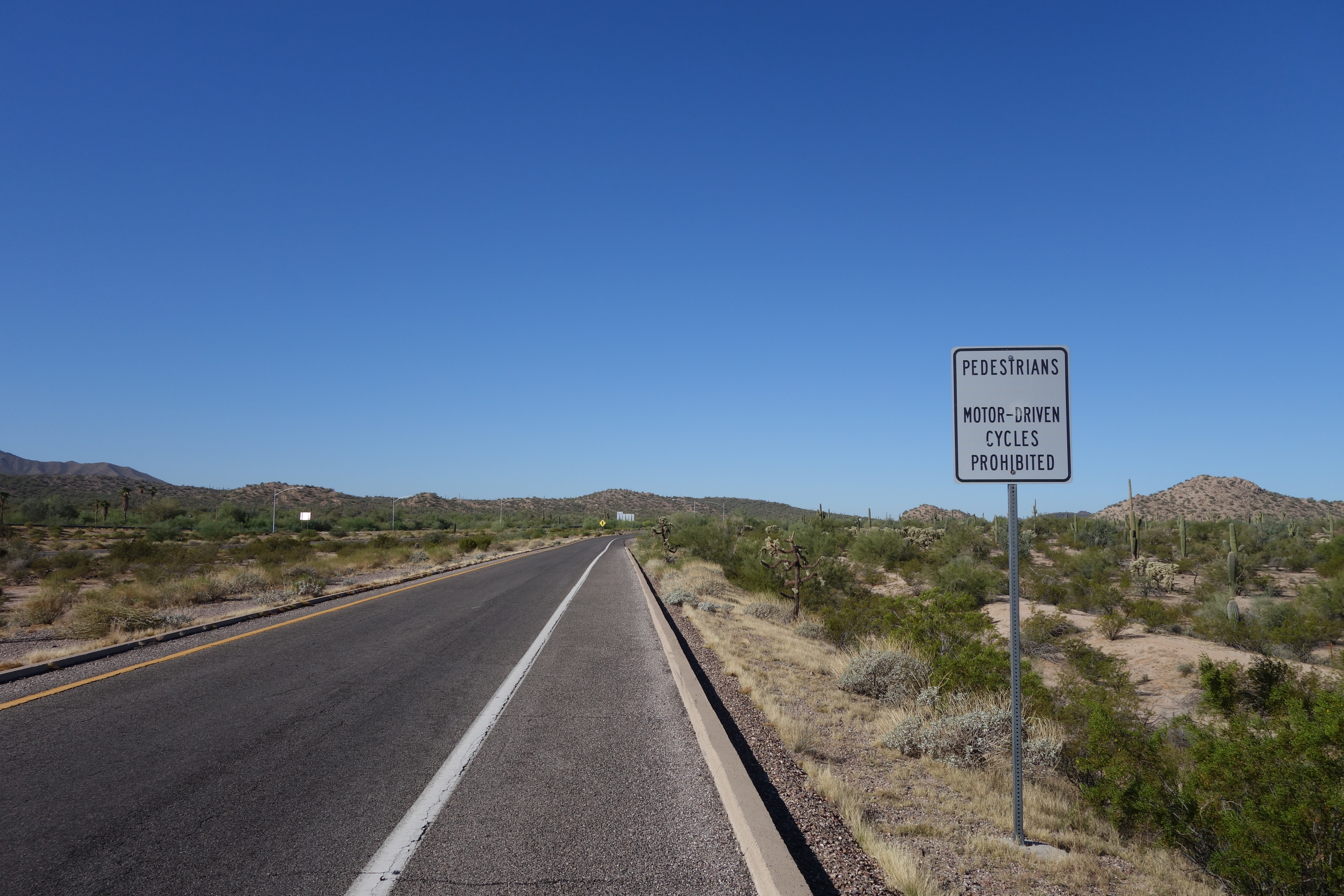 Leaving Tucson I was fortunate enough to have a strong tail wind. This was good as it cooled the already hot morning down a little more, but also pushed my average speed up a lot. Over a week off the bike and my legs were tired. I hadn't planned a long day anyway. 65 miles to Casa Grande and what should be a RV park and campsite. The road was mostly flat. Following the bottom of the valley on a Frontage road along side the I-10 freeway.