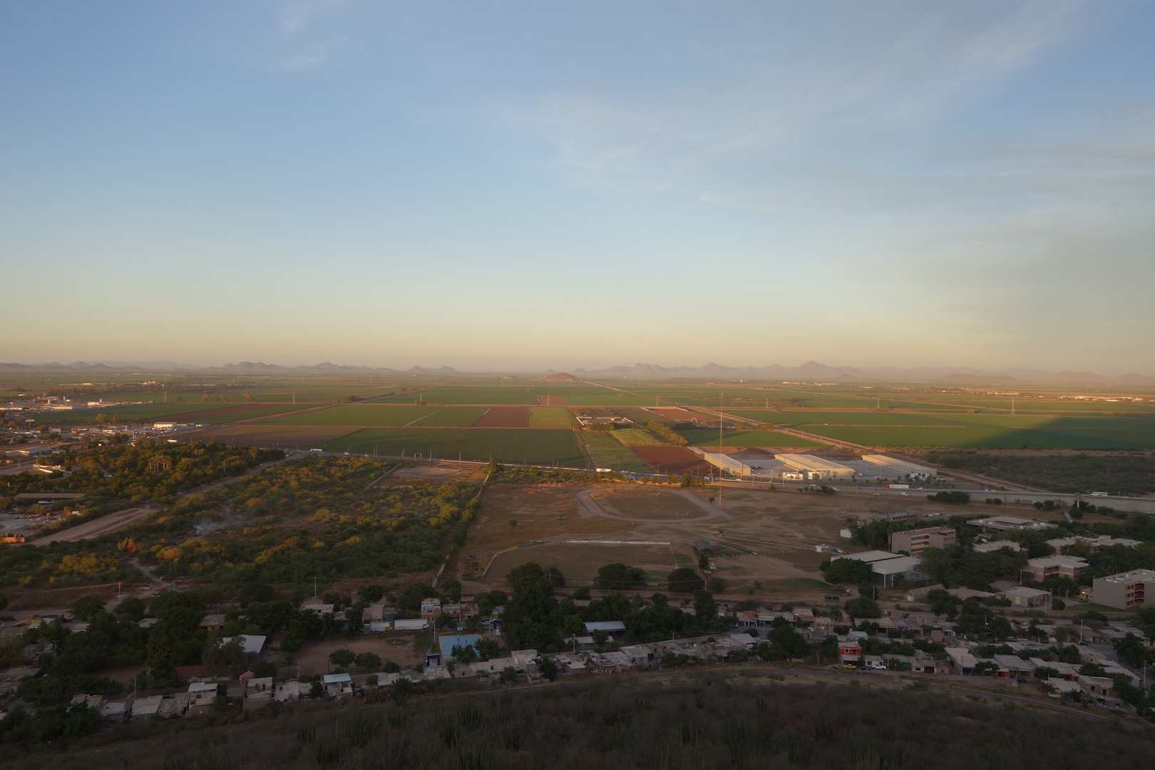 The desert now completely erased and replaced with vast verdant agricultural fields as I continued south.