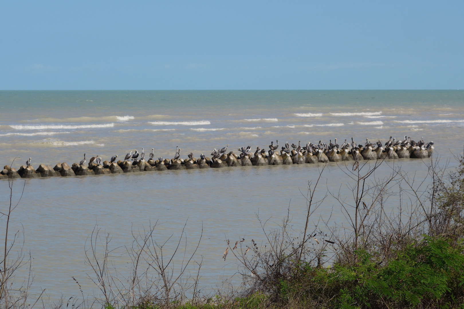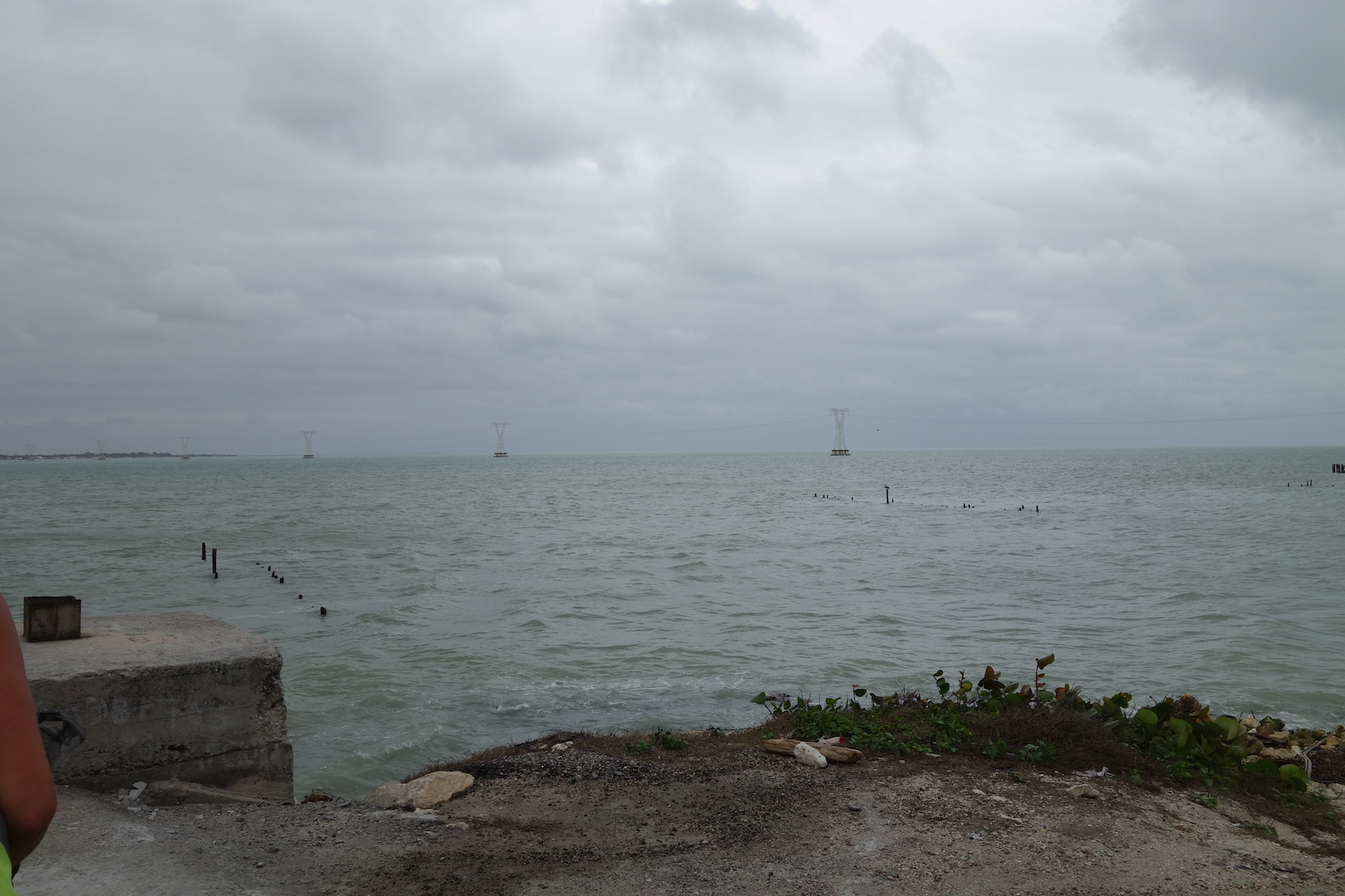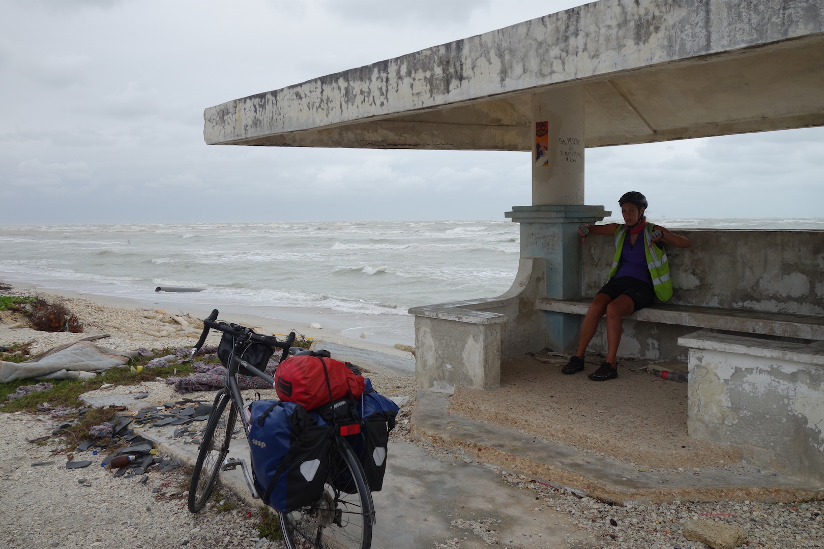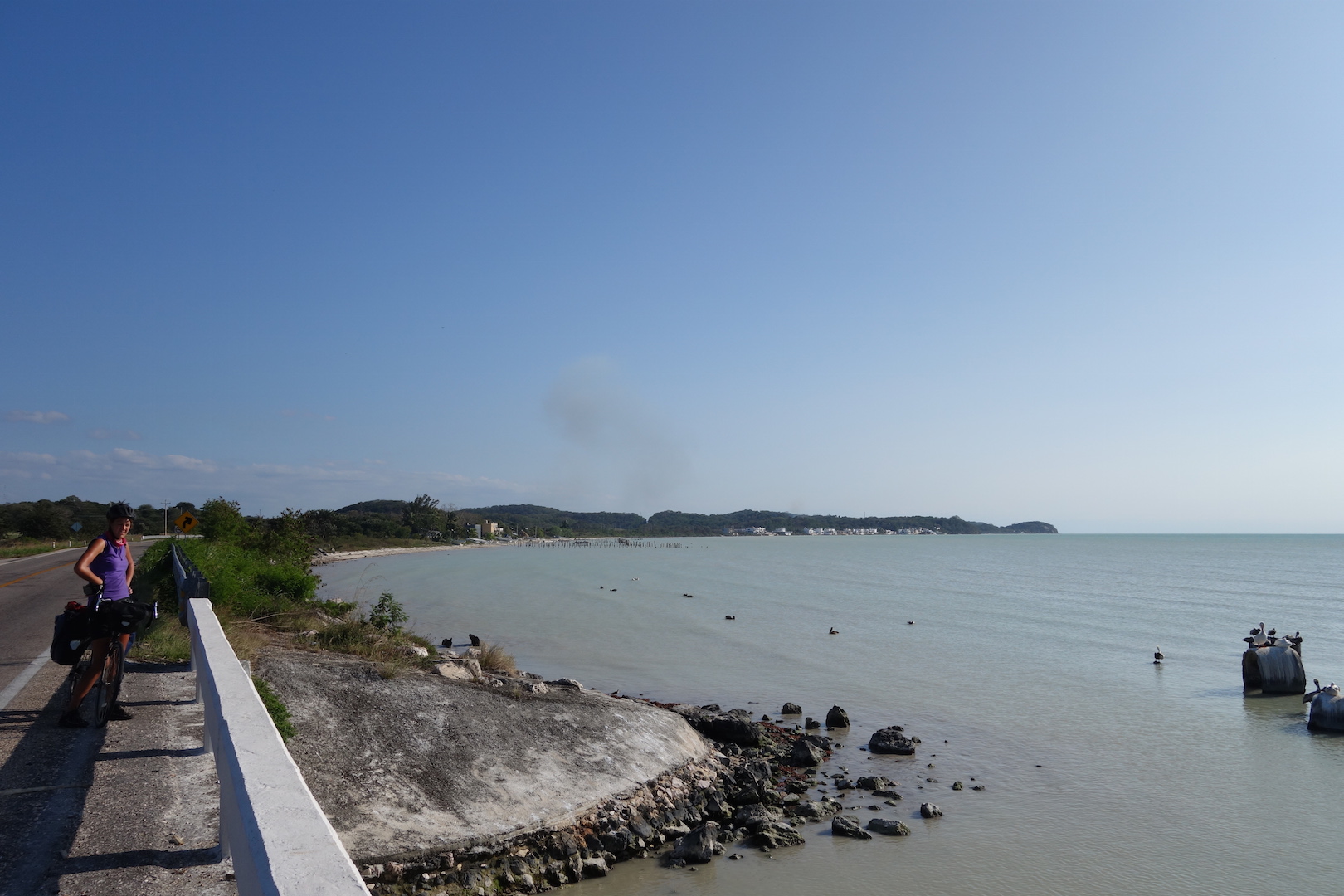 Struggling along the Campeche coastline the flat land and coastal road lies only a few metres above sea level. And the low bushes, plants and reeds in the marshes and lagoons do little to slow the force of the wind. Ad we had it directly into our faces!