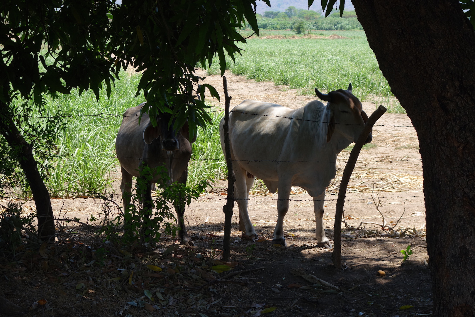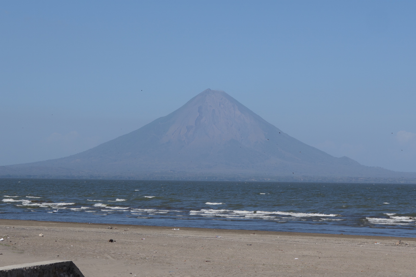This section of the continent is low rolling hills. The road is good and mostly flat, but inland you can see the famous volcanoes. Some recently active, others eroded piles of rock and ash from millennia gone by. The thick tropical vegetation has disappeared again, now replaced by savannah parkland, more skinny cows, goats, horses and lots and lots of litter.