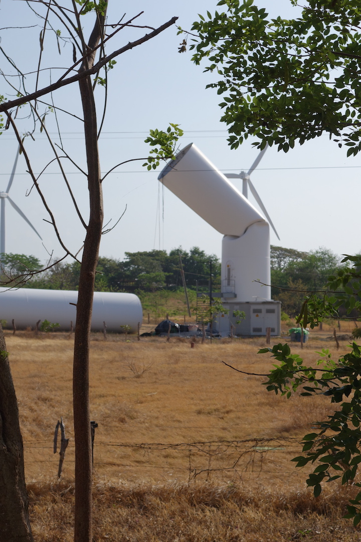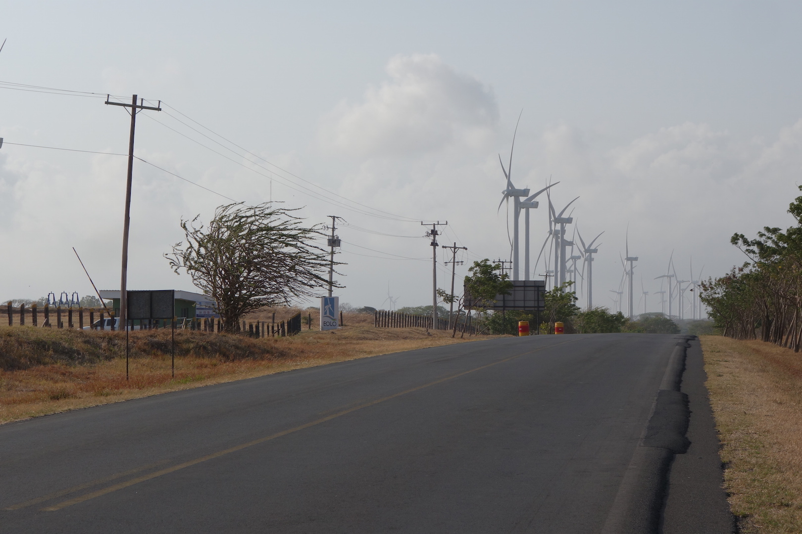 A strong headwind blowing from the east over the lake was captured by kilometre after kilometre of wind turbines as I headed towards the Peñas Blancas frontier.