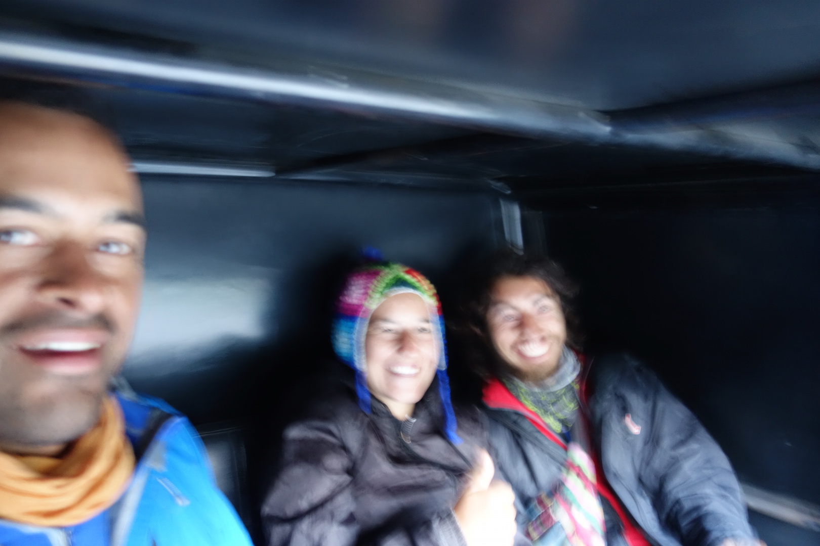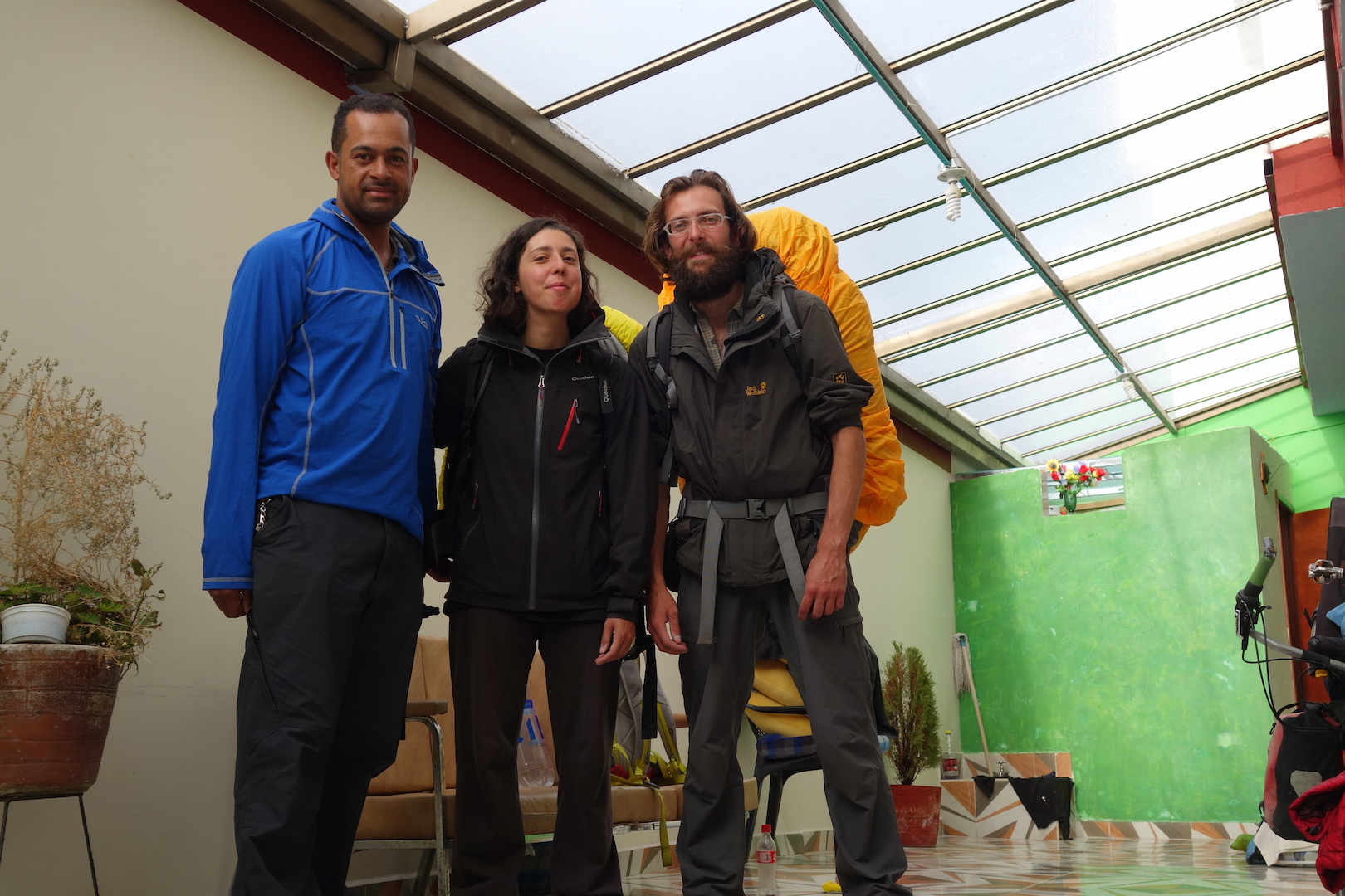 Two Italians who arrived equally tired, after hitch-hiking from Quito, Ecuador a short time before me.