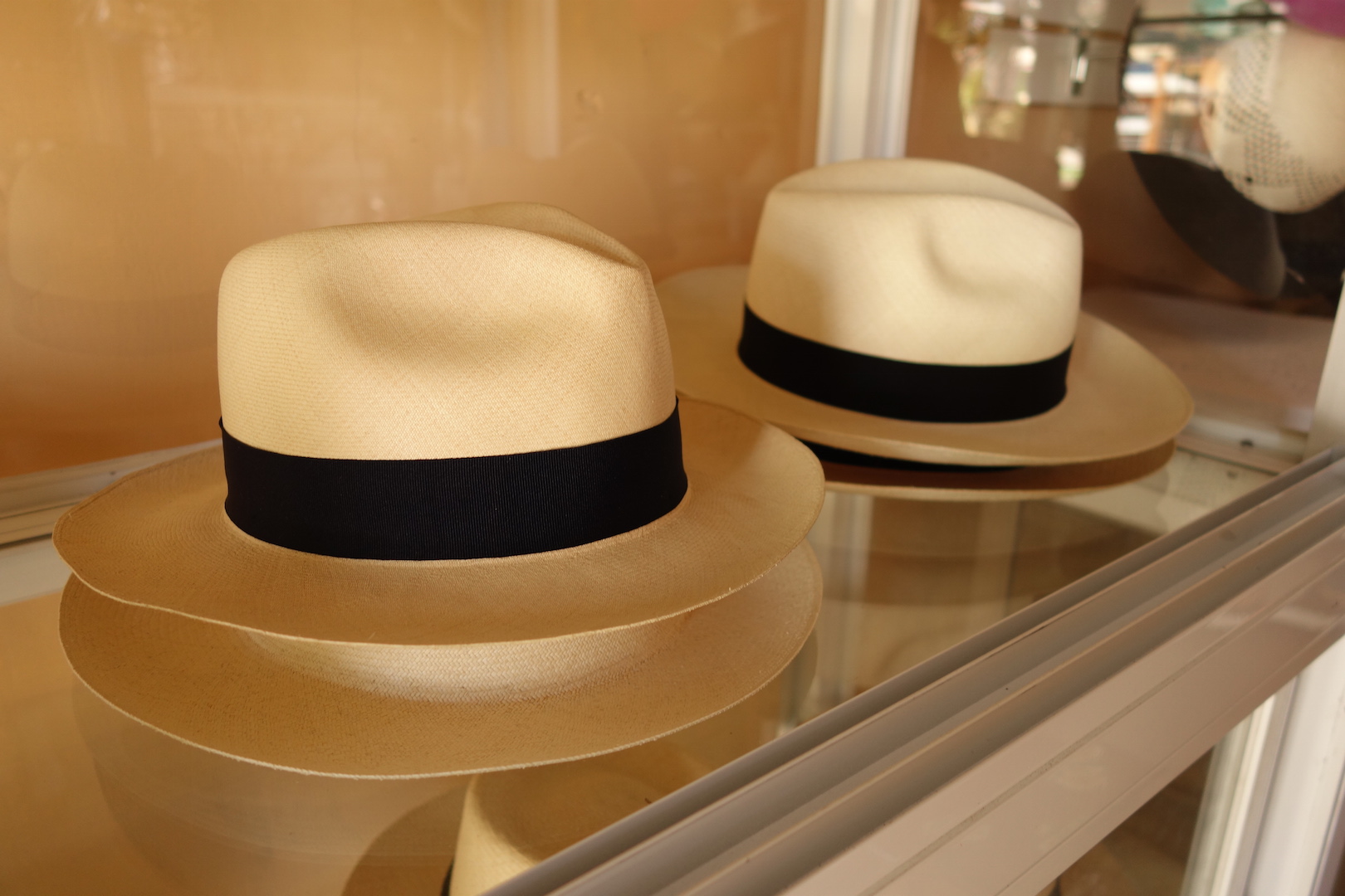 The name (and unfortunately the copyright) Panama hats come from the early days of shipping the products from the South American coastline to the international distribution warehouses in Panama city where the local tradesmen tagged on the name and would then send these high quality hats worldwide.
