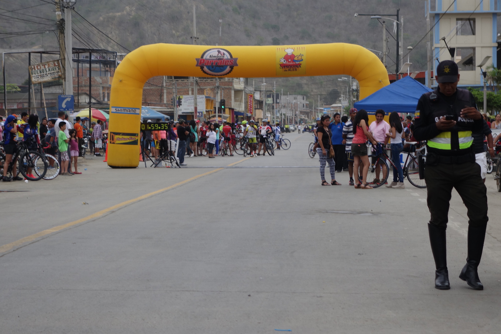 By chance I was caught up by Tom as he was also following the coastal route. We cycled and chatted together to Puerto Lopez and almost became part of a cycle race the town was holding.