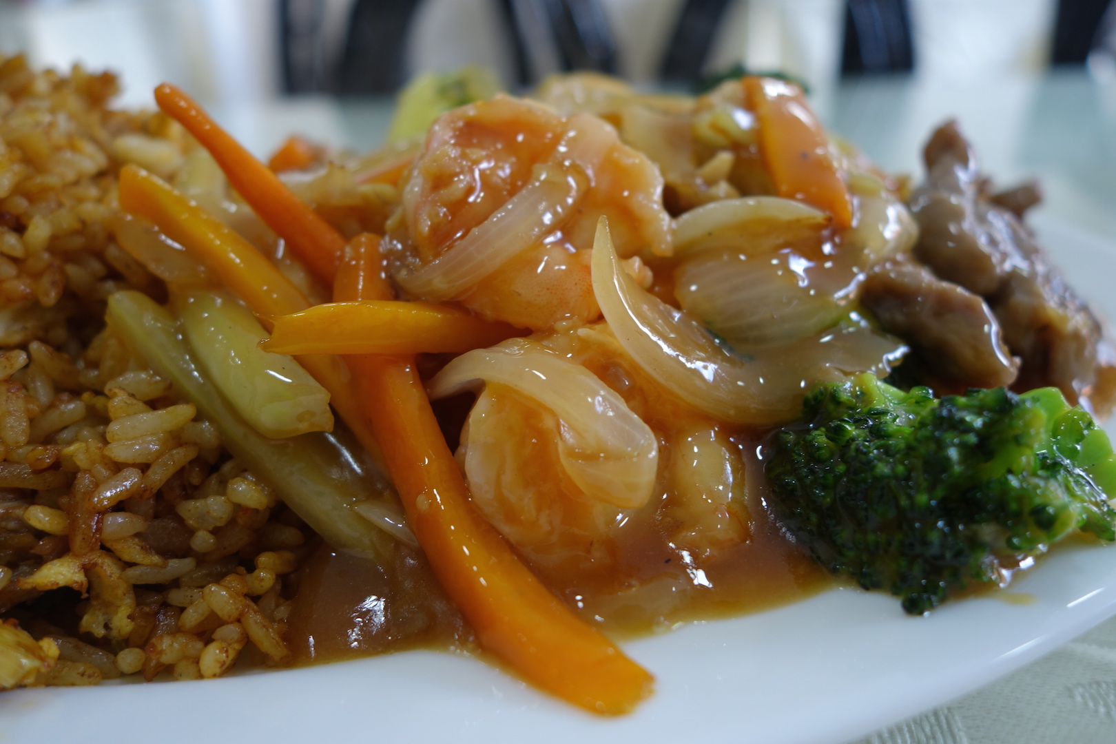 I had a very nice fresh Mandarin juice and a Prawn omelette. But it was only when I was paying to leave did I notice how filthy the kitchen was and that the woman was chopping raw chicken and preparing cooked food with unwashed hands.