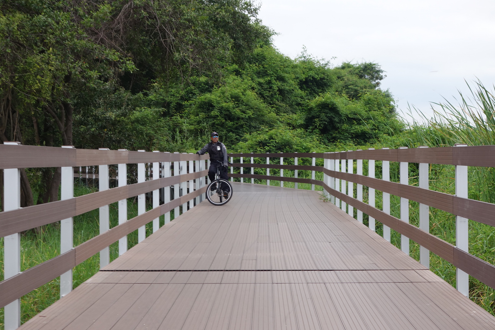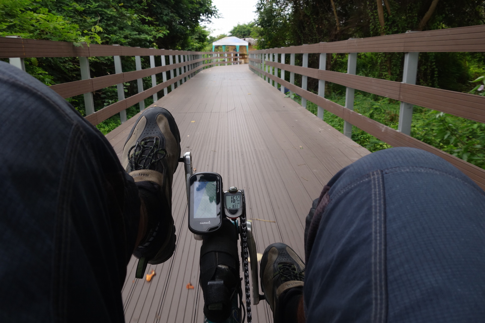 The road here was incredibly busy and dangerous and as we crossed the 1.5 km bridge with traffic continually buzzing us, I could not help wonder why we were not using the clearly marked cycle path on the opposite side?