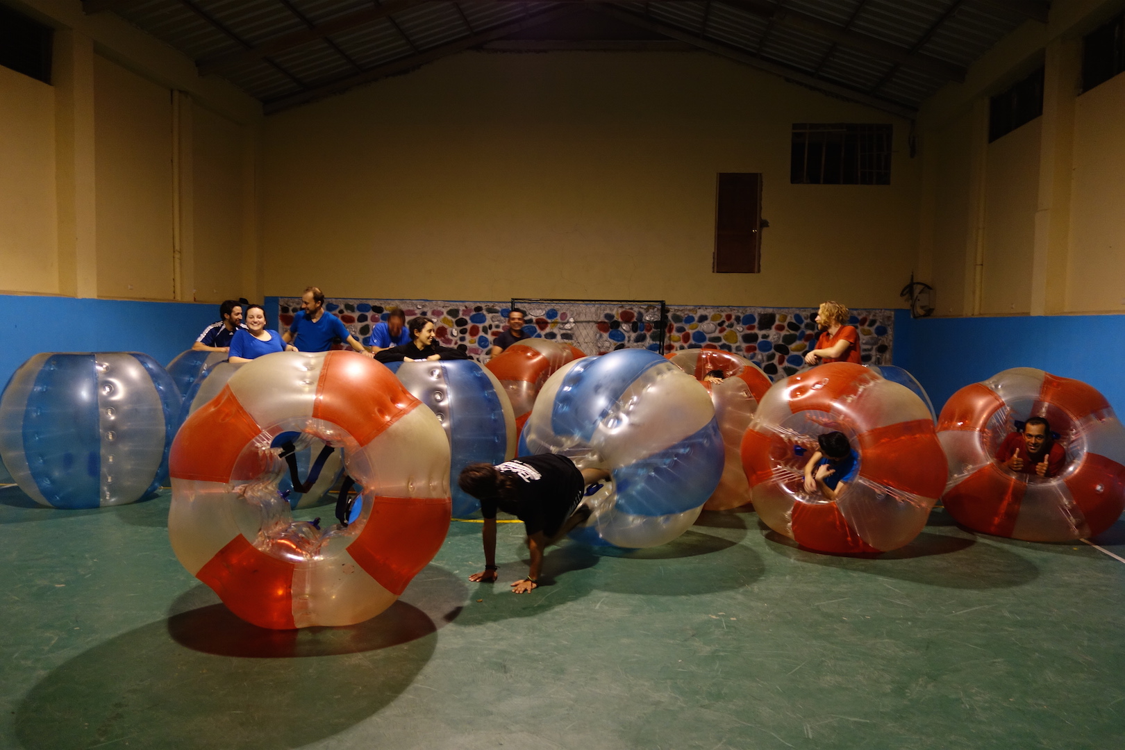 'The team' eventually managed to meet up though and spent an extra day in the city as we were invited to play bubble football!