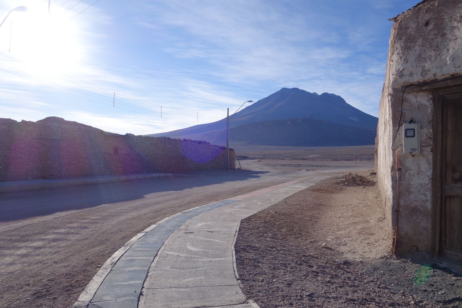 Walking round the village, I saw the sun faded sign of a store but it was closed. I needed to change my Bolivian Soles and buy food for the 2 day journey to Calama. The next and first major town. But nothing was open. This is an industrial town and it is the weekend.