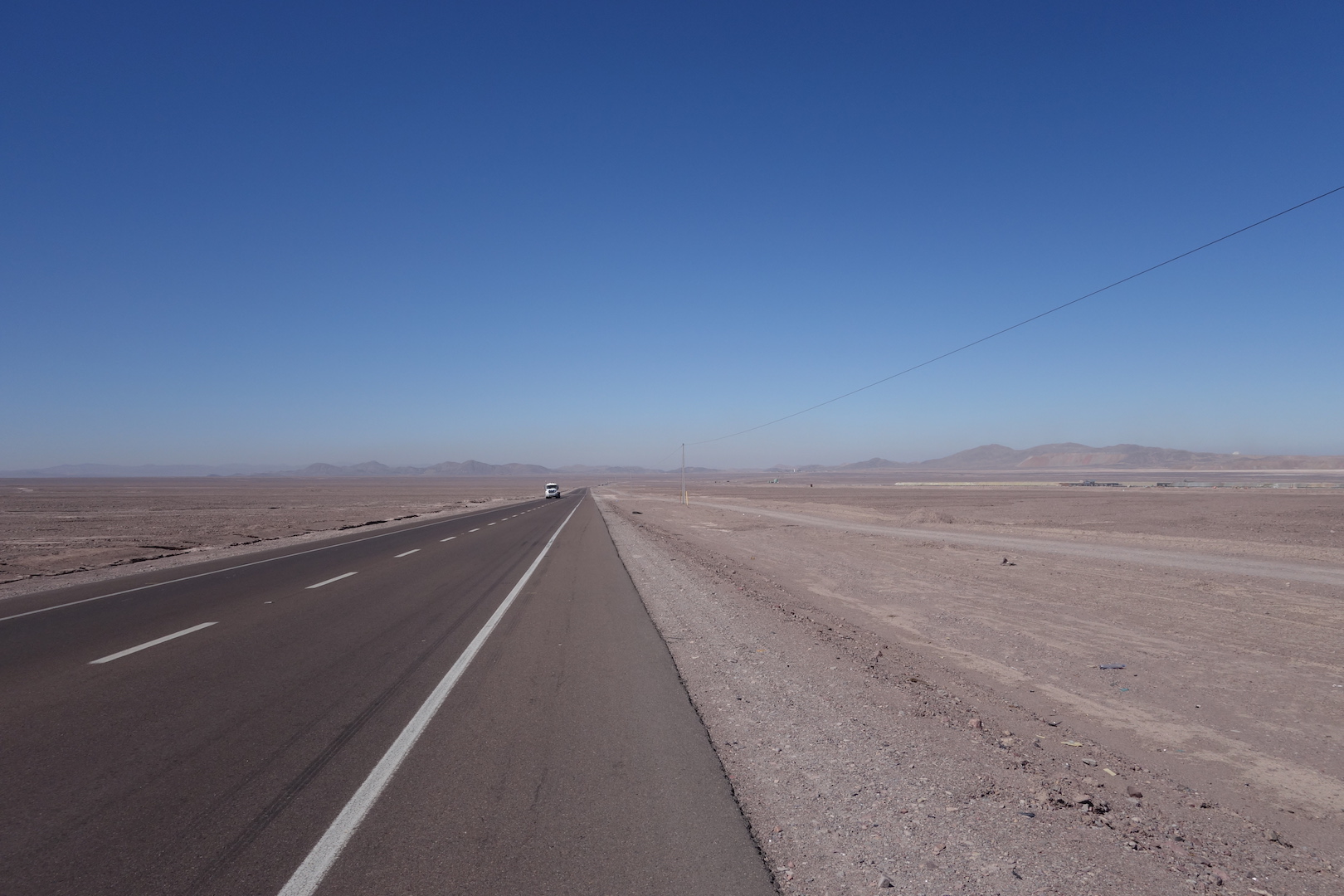 I pedalled into the desert and 20 kilometres later I managed to stop a bus who gave me a ride to Calama.
