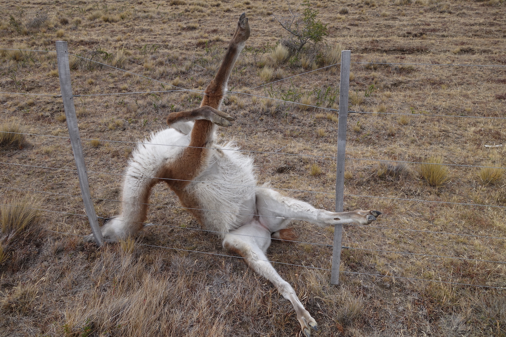 A few kilometres from the border with Chile, I found a Guanaco stuck in a fence.