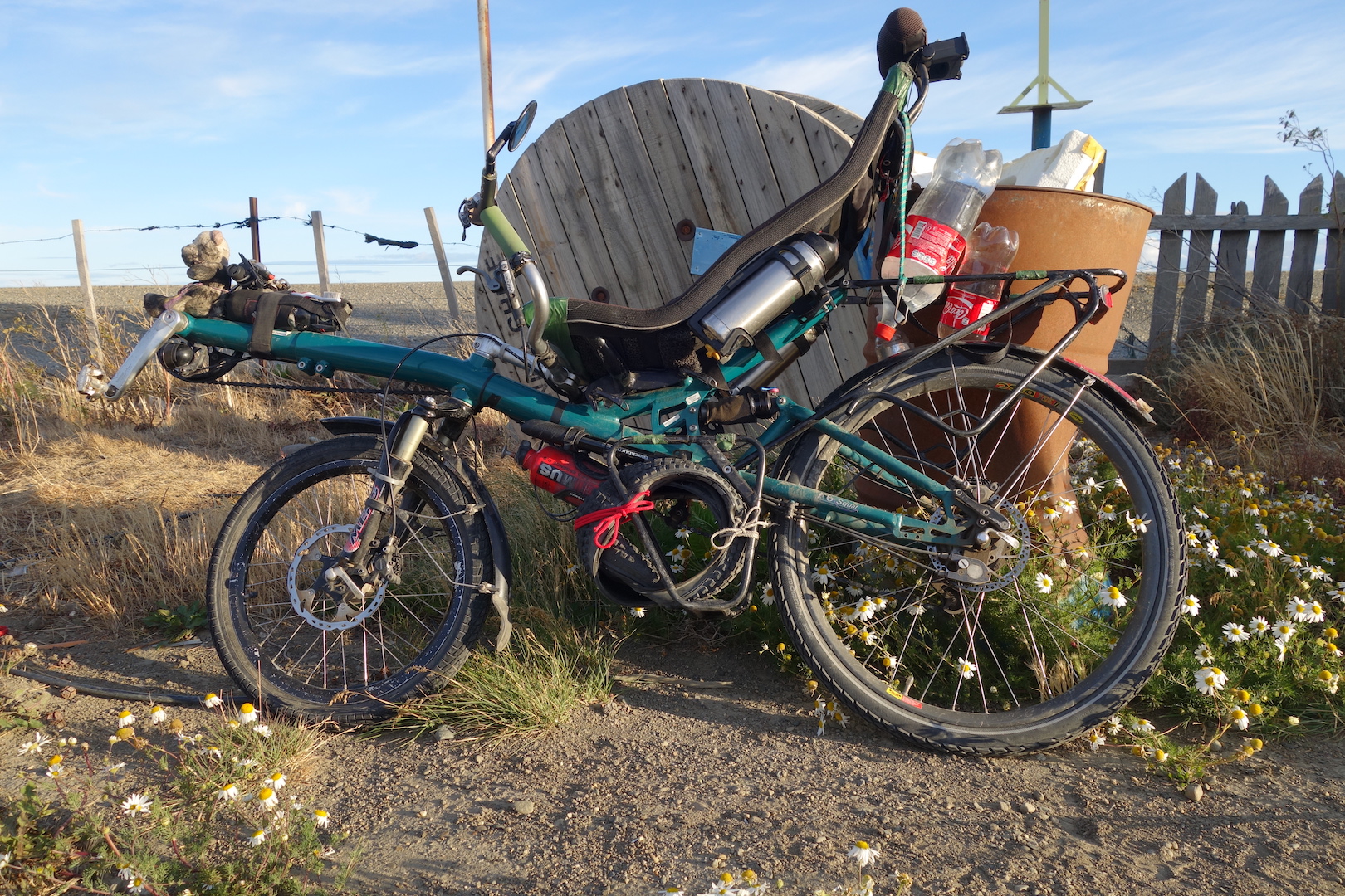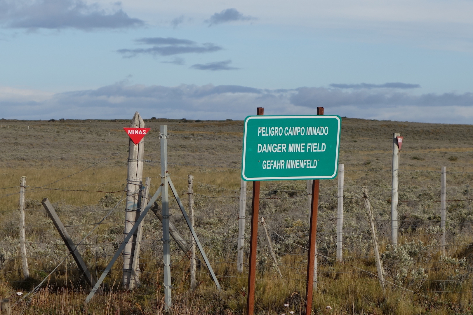 As I came around one corner, I scared another group of Guanaco, several of whom leapt over the fence and straight into a clearly marked field of mines. A safe distance away, and they stopped and looked at me as I pedalled away hoping that I was not about to hear a loud explosion and see Guanaco body parts flying over my head.