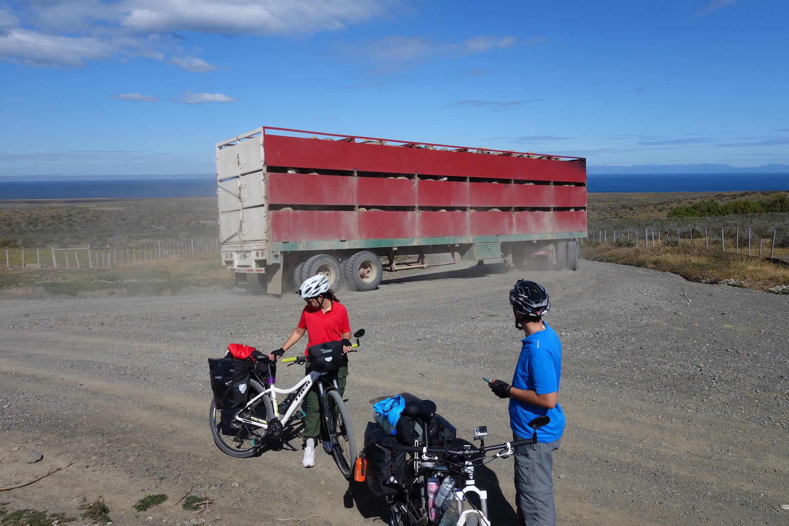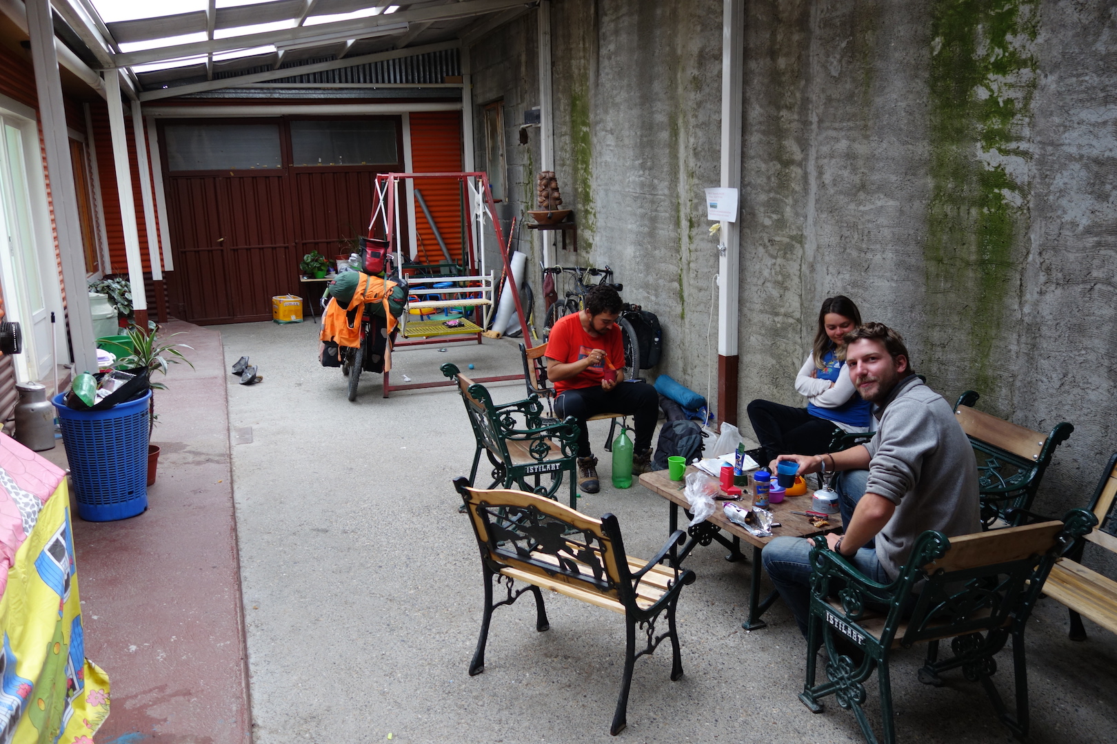 Returning outside, the Austrian started to ask me about the road north. Mauro and Lucy, the two Brazilian cyclists went to also check in.