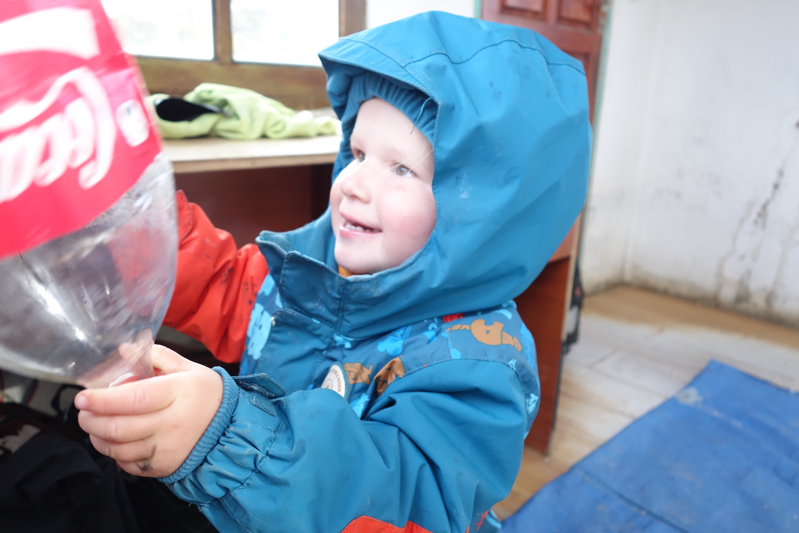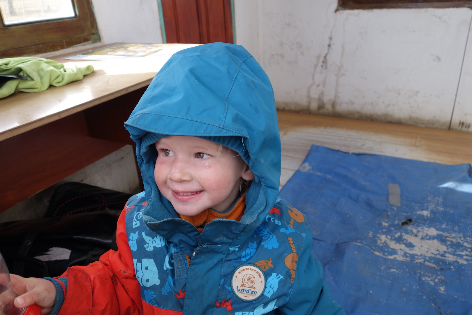 But soon got bored and began playing inside the refuge hut instead.