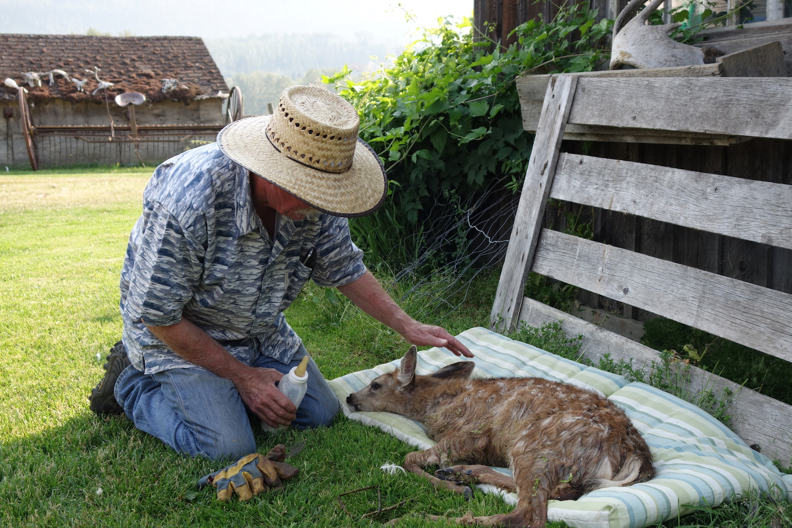 Farmer at San Fernando Mission. Caravan hosting.